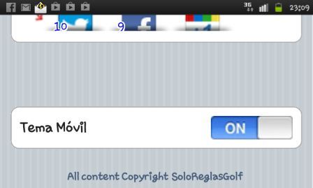 Una vez el Tema Móvil esté en ON , al volver a entrar a la web soloreglasgolf.com los test se ajustarán automáticamente al tamaño de la pantalla: